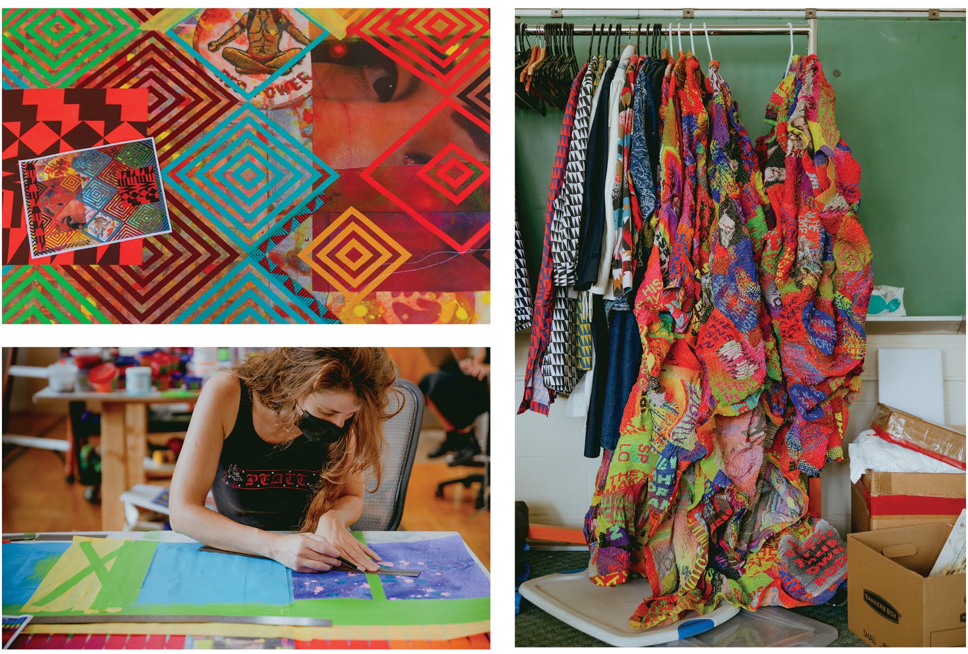 Studio assistants work among several rooms dedicated to paper, painting, beading, or sewing. Photos by Mel Taing.
