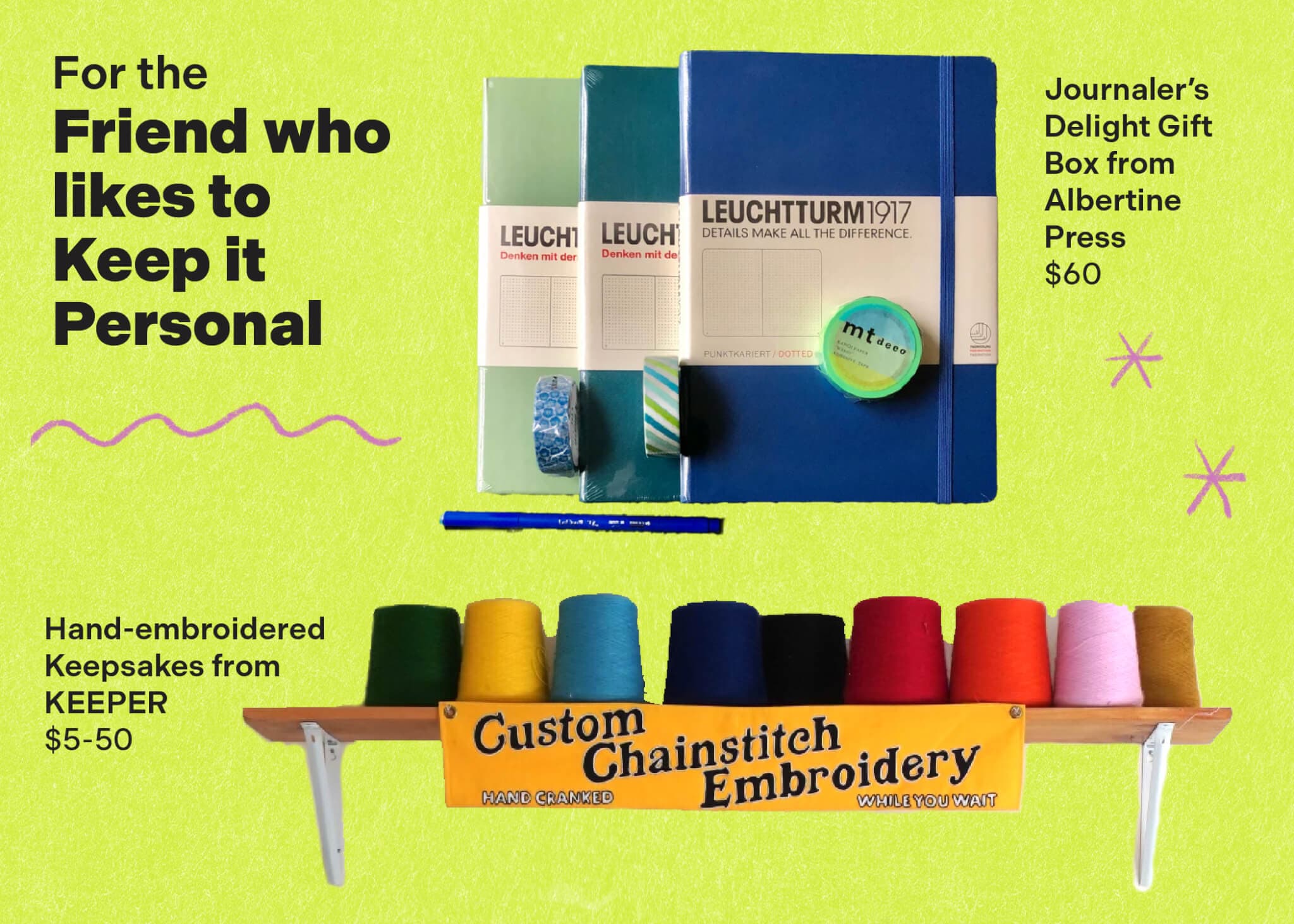 At their brand-new Bow Market space, KEEPER uses vintage hand-guided chain-stitch machines to embroider soft goods. Bring in a favorite jacket, tee, or handkerchief, or choose from one of theirs as the base for a unique piece of wearable art!