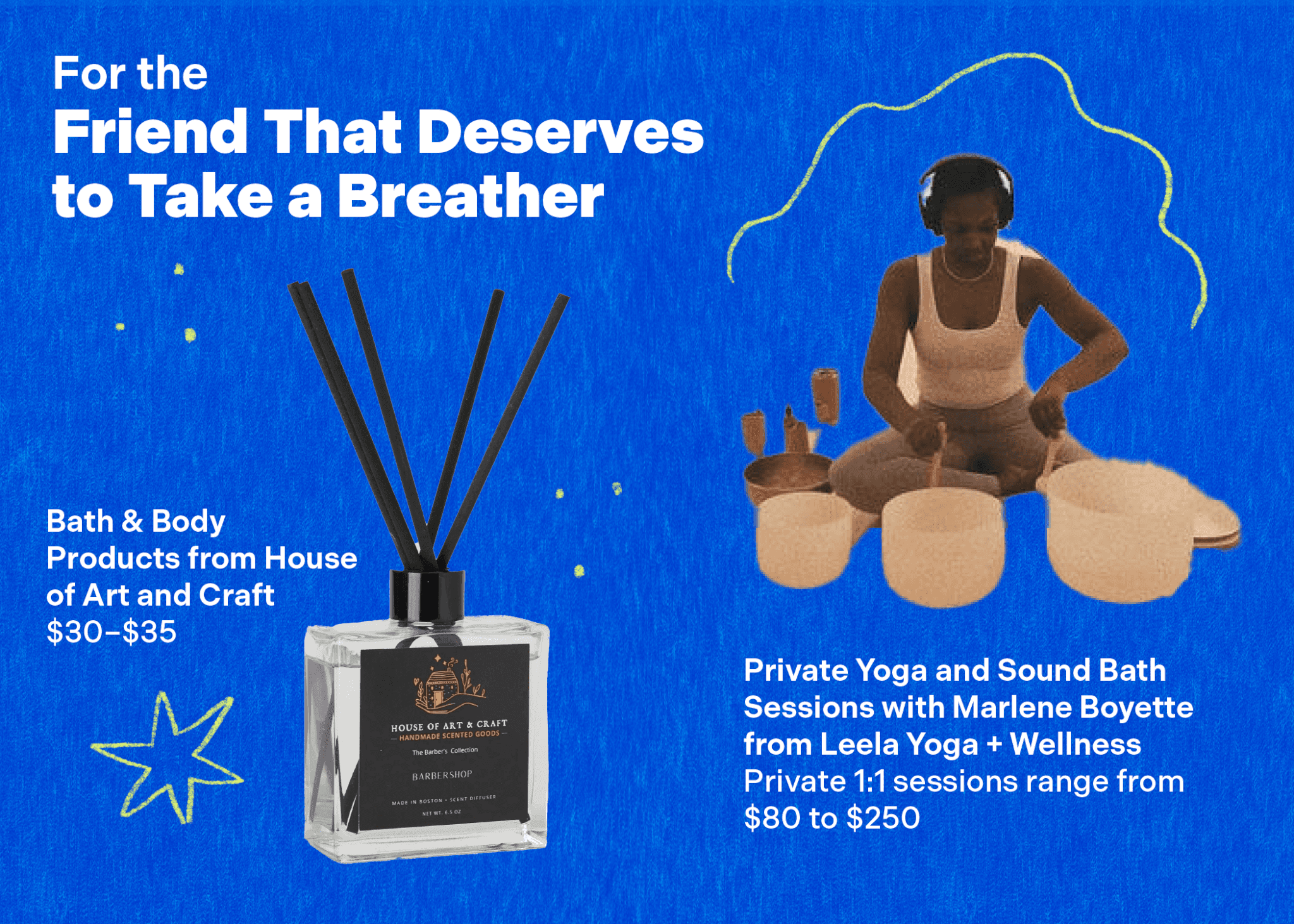 Marlene Boyette founded Leela Yoga + Wellness in 2013, sharing her “trauma informed, healing centered” practice with Boston’s diverse communities over the last decade through movement, stillness, and sound. While Boyette can be found leading public events around the city, she also offers private sessions filled with deep rest and specialized instruction wrapped in her supportive, choice-based approach inclusive of all backgrounds, ages, and abilities. Options include a customizable one-hour sound meditation with up to one additional guest, or a one-on-one private yoga session and supplemental guided meditation for the duration of your choice.