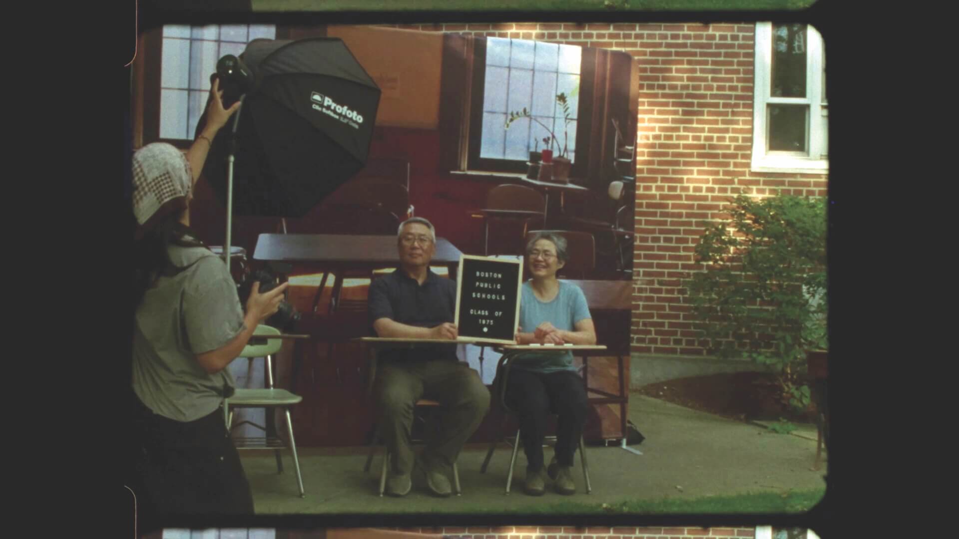 At a filming event this summer, Xu set up photography backdrops of buses and of a Josiah Quincy School classroom for attendees to recreate moments from the era. She was inspired by La Commune (Paris, 1871), a 2000 documentary directed by Peter Watkins that makes heavy use of historical reenactment.