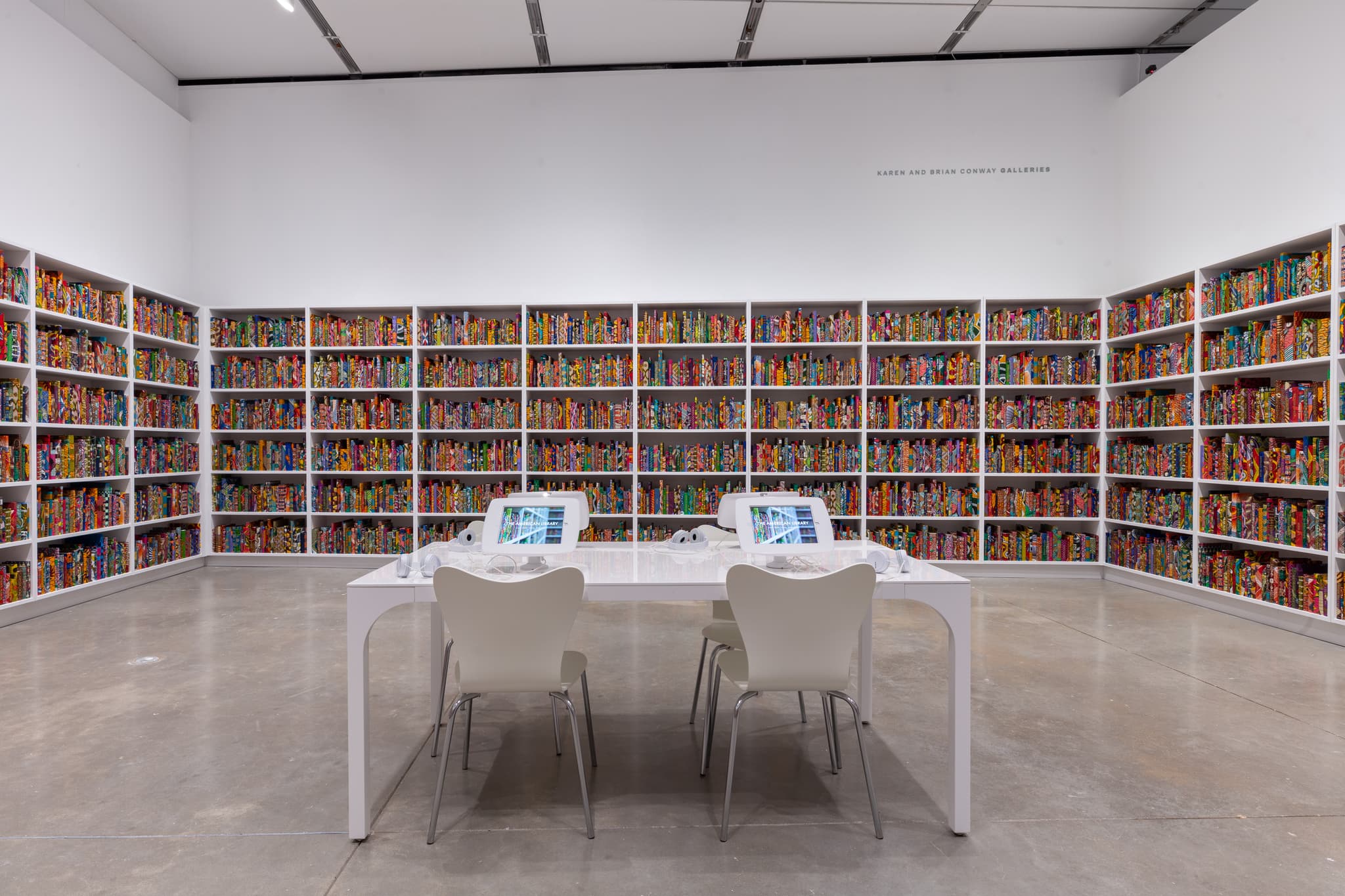 Yinka Shonibare CBE, The American Library, 2018. Installation view, Institute of Contemporary Art/Boston. Photo by Mel Taing. © Yinka Shonibare CBE