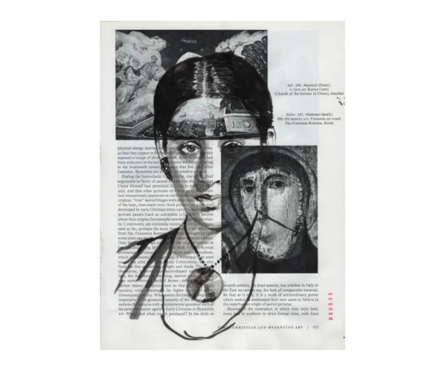 Sumi ink on book page