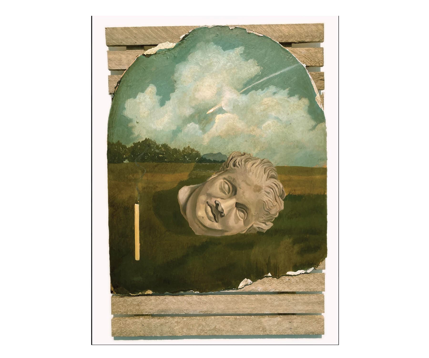 Oil on panel, wood assemblage