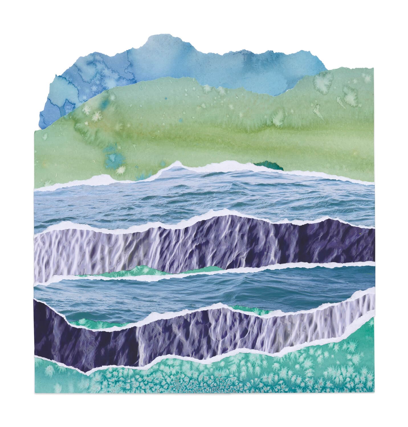 Pigment prints, watercolor, gouache, and saltwater on paper