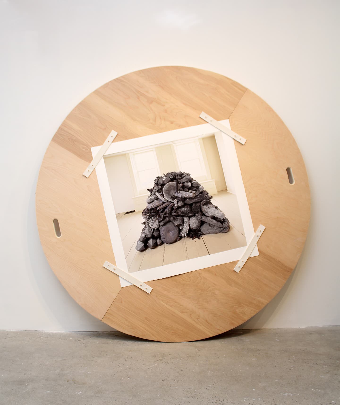 JJ: Aside from this current research-based work, your studio practice often involves archiving and creating work from your own personal history. This is evident in your “Paper Weight” series, but especially so in “Heap”—a large arrangement of reconfigured concrete objects that changes with each installation. How did you first begin creating that body of work?