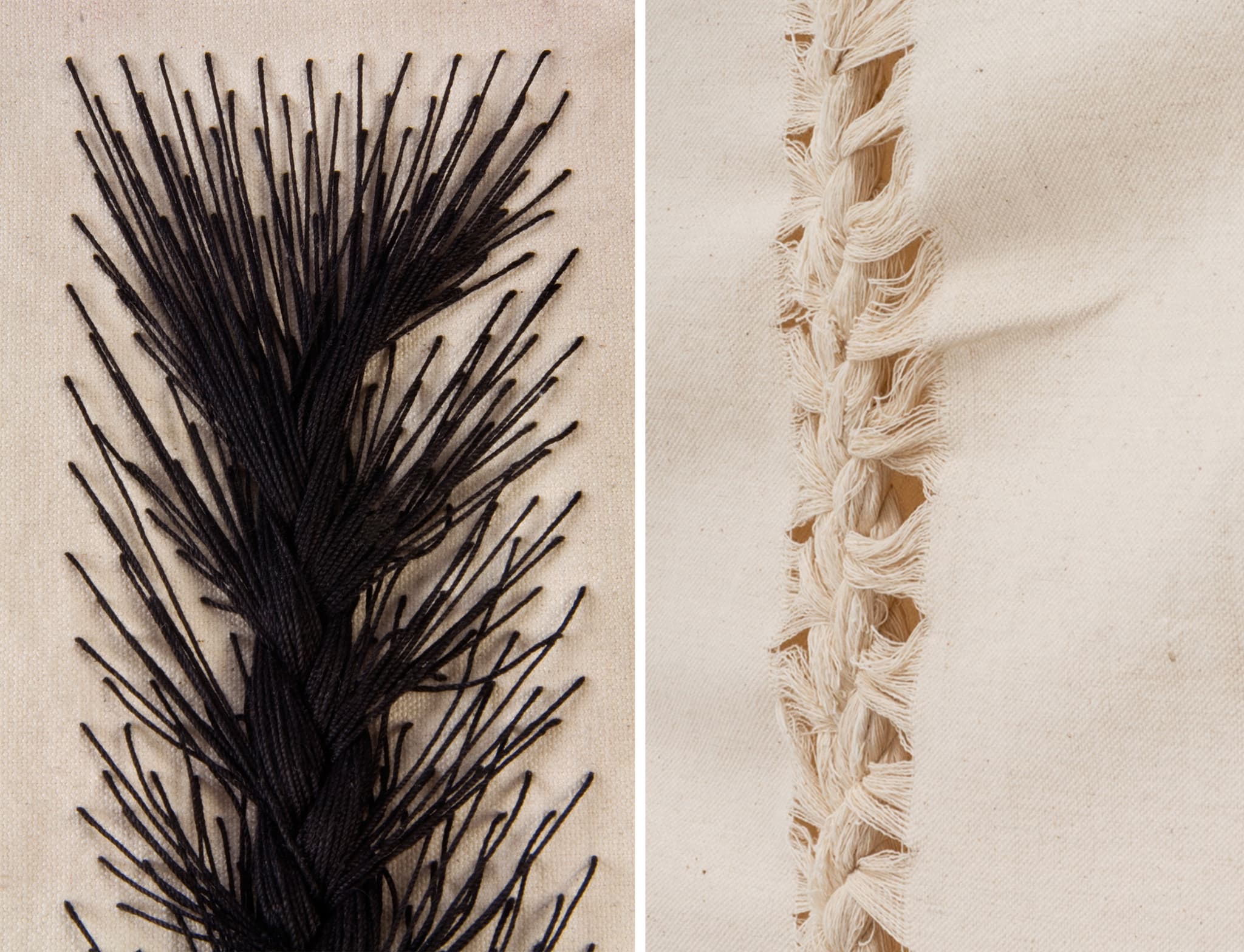 French Braid and Cornrow, 2013. Detail view. Cloth, thread, wood. Photo by Taylor Dabney. Courtesy of the artist.