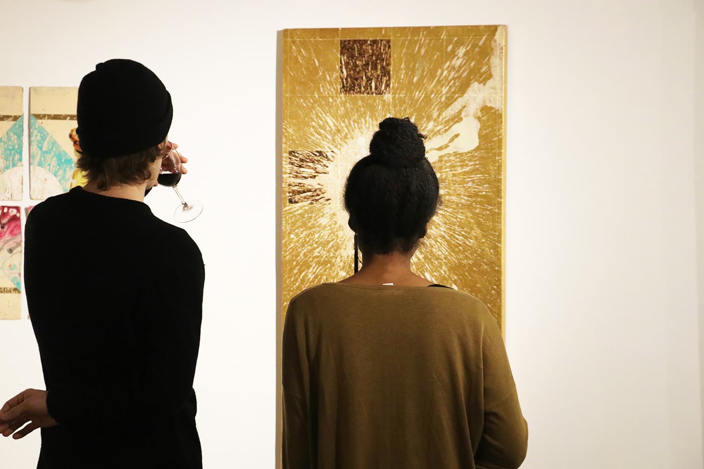 Her gift is in the ability to create and transform, but also in a simple ability to see, the potentials in figures and objects, the kinetic energy trapped in objects and shared histories. The same might be said for her understanding of the places and people that make up her community. Solei’s work provides a way out of 21st Century disposability, a world stacked up with repurposed impulses, images, and sentiments. She allows experiences and their echoes to pool together in golds and soothing tones. Solei sees this layered world and its tensions not for exhausting catalogue or demarcation, but for communal reverence.