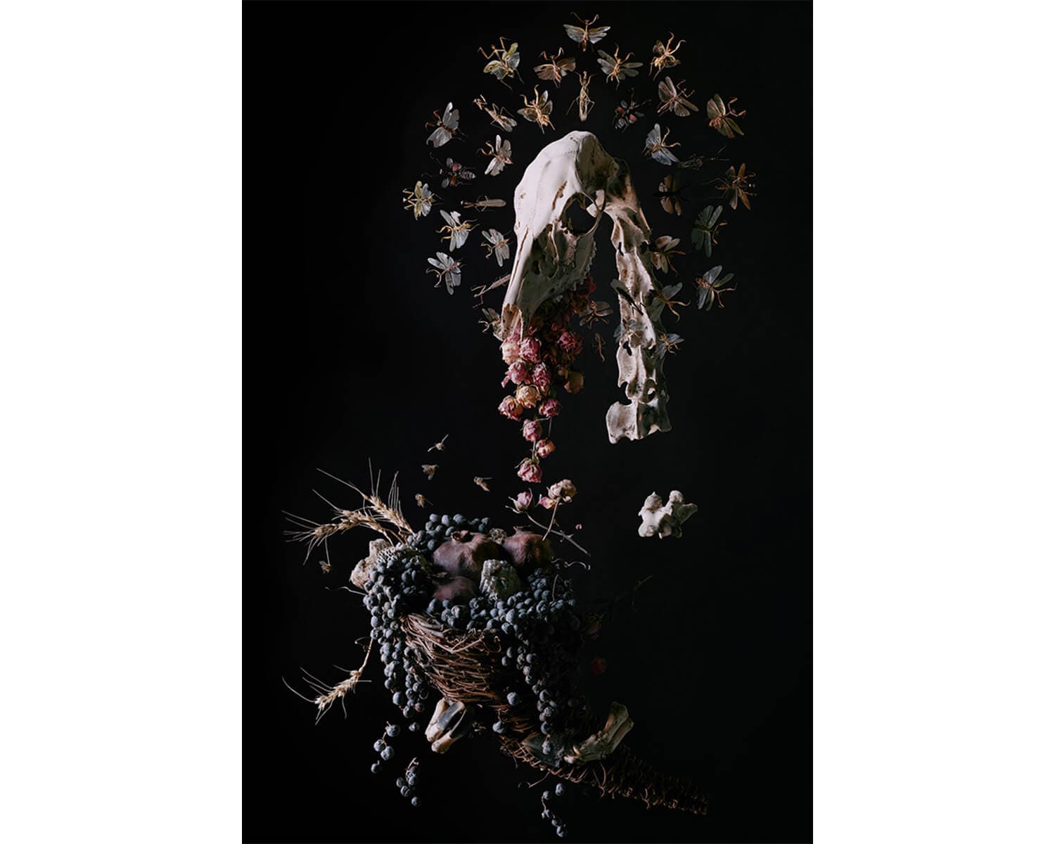 My inner goth is geeking out for local artist Tara Sellios’s large-format photographs, which locate beauty in darkness and decay. Drawing on Catholic iconography and Dutch still-life aesthetics. Sellios assembles fragile materials—dried rosebuds, desiccated grapes, bird bones, spider specimens—into sculptural tableaux, then photographs them using natural light and an 8 × 10 camera. The artist then removes all traces of the wires and pins, leaving behind memento mori that look like they’re levitating. Sellios’s first solo museum show borrows its title from the book of Job, but she takes a page from Revelation too, delivering apocalyptic vibes that feel right on time.